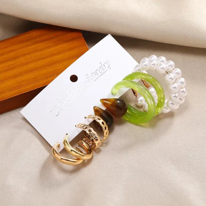 5Pairs Acetic Acid Earrings Set