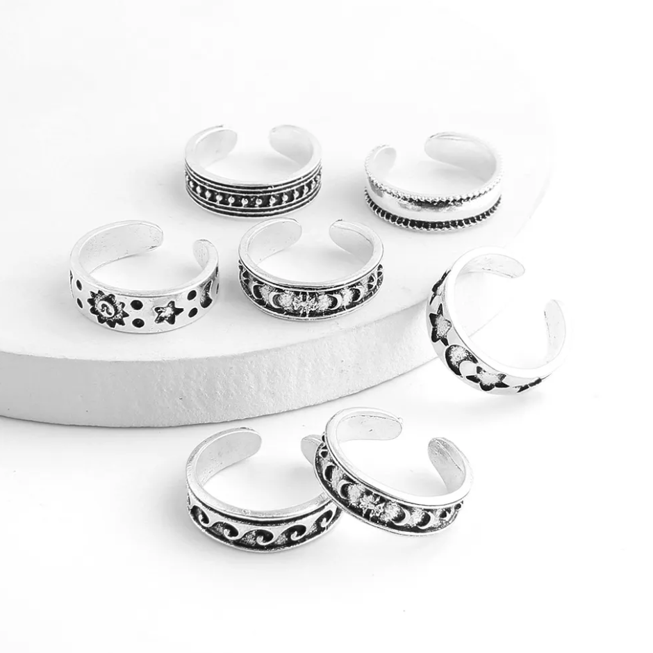 7 Pcs Vintage Adjustable Toe Rings
