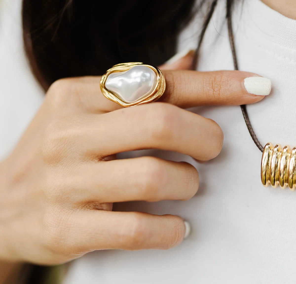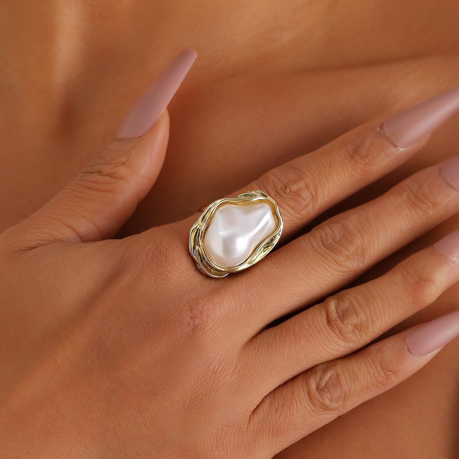 - Exaggerated Big Pearl Ring: The minimalistic design of this irregular pearl ring makes it perfect for everyday wear and stacking with other pieces, you will surely get tons of compliments on multiple occasions.