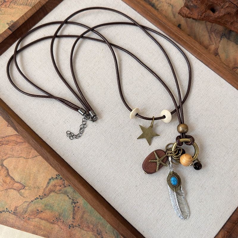 Crafted from sustainably sourced wood, this elegant necklace features an intricately carved feather and star motif within a refined oval pendant. The lightweight design ensures comfortable all-day wear, while the natural wood grain adds organic warmth to any ensemble. Perfect for layering or wearing solo, this piece bridges bohemian charm with understated sophistication. An ideal accessory for those who appreciate artisanal craftsmanship and nature-inspired jewelry.