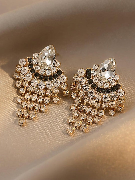 Gold-toned geometric drop earrings, gold-plated, has pearls details