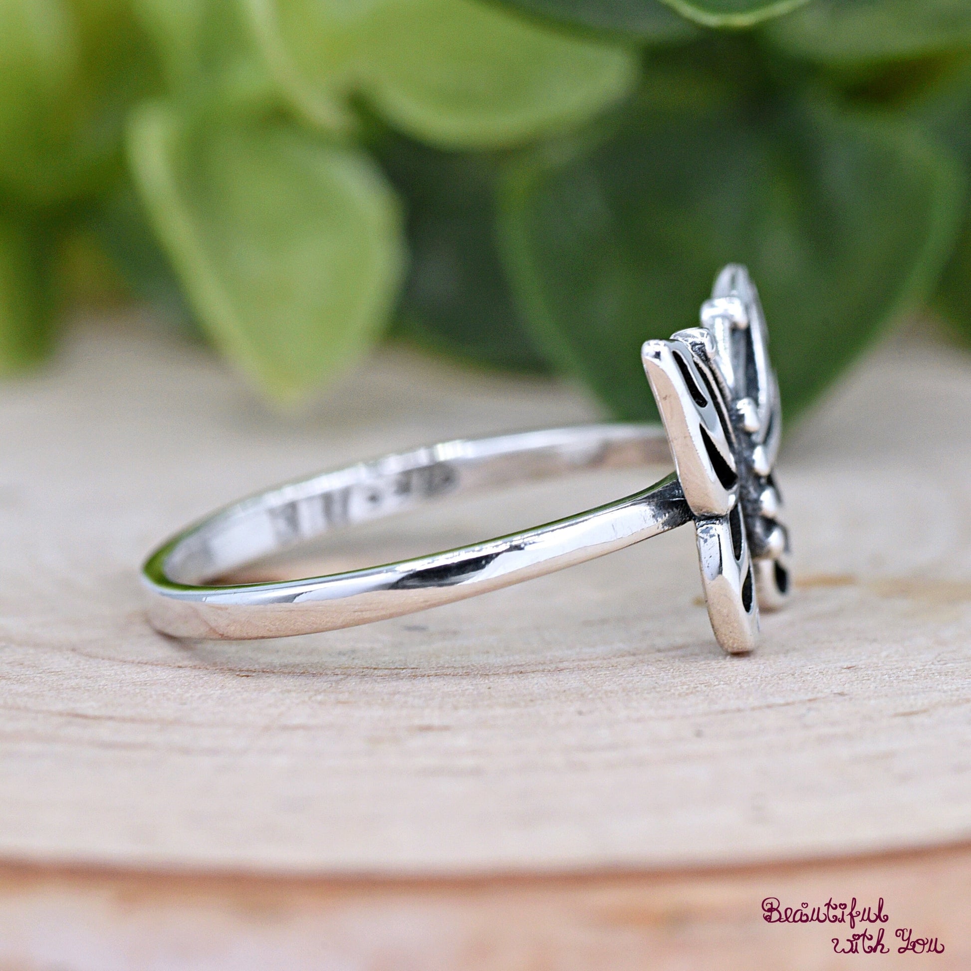 # Sterling Silver Butterfly Ring Elevate your jewelry collection with this exquisite sterling silver butterfly ring, where timeless elegance meets nature-inspired design. The precious metal provides durability and a lustrous finish that complements any skin tone, while the intricately sculpted butterfly motif showcases superior craftsmanship. Sterling silver's hypoallergenic properties make this piece suitable for sensitive skin, ensuring both beauty and comfort. Whether worn as a statement piece or layered with other rings, this versatile design transitions effortlessly across occasions. A sophisticated choice for those who value quality materials and meaningful symbolism in their accessories.