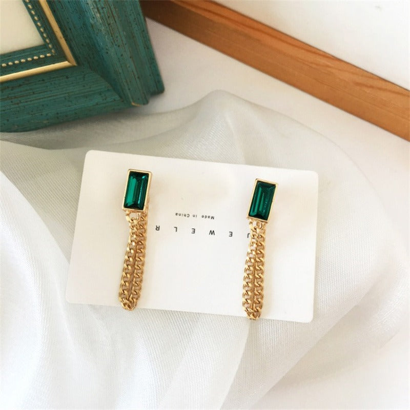 Elevate your jewelry collection with these exquisite vintage-inspired green crystal tassel earrings. Crafted with meticulous attention to detail, each piece features lustrous green crystals suspended from delicate tassel accents, creating graceful movement with every wear. The timeless vintage aesthetic complements both classic and contemporary styles, making them versatile additions to any wardrobe. Perfect for special occasions or everyday elegance, these earrings deliver sophisticated charm with refined craftsmanship. An ideal choice for those who appreciate quality jewelry with distinctive character and enduring appeal.